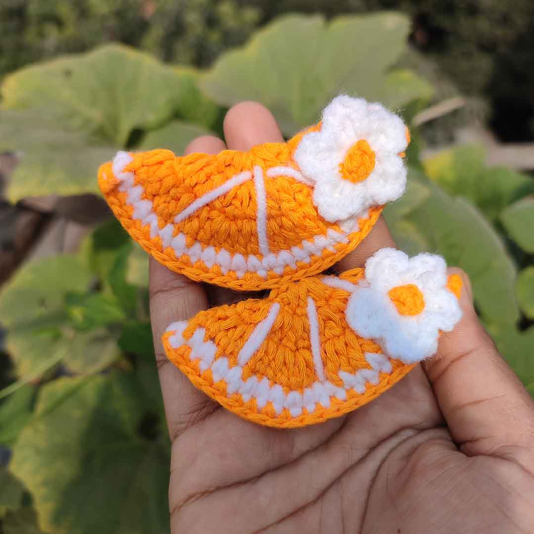 কোডঃ OR11; Handmade Crochet Orange Slice Hair Band/Rubber (1 Pair) 🍊🌼