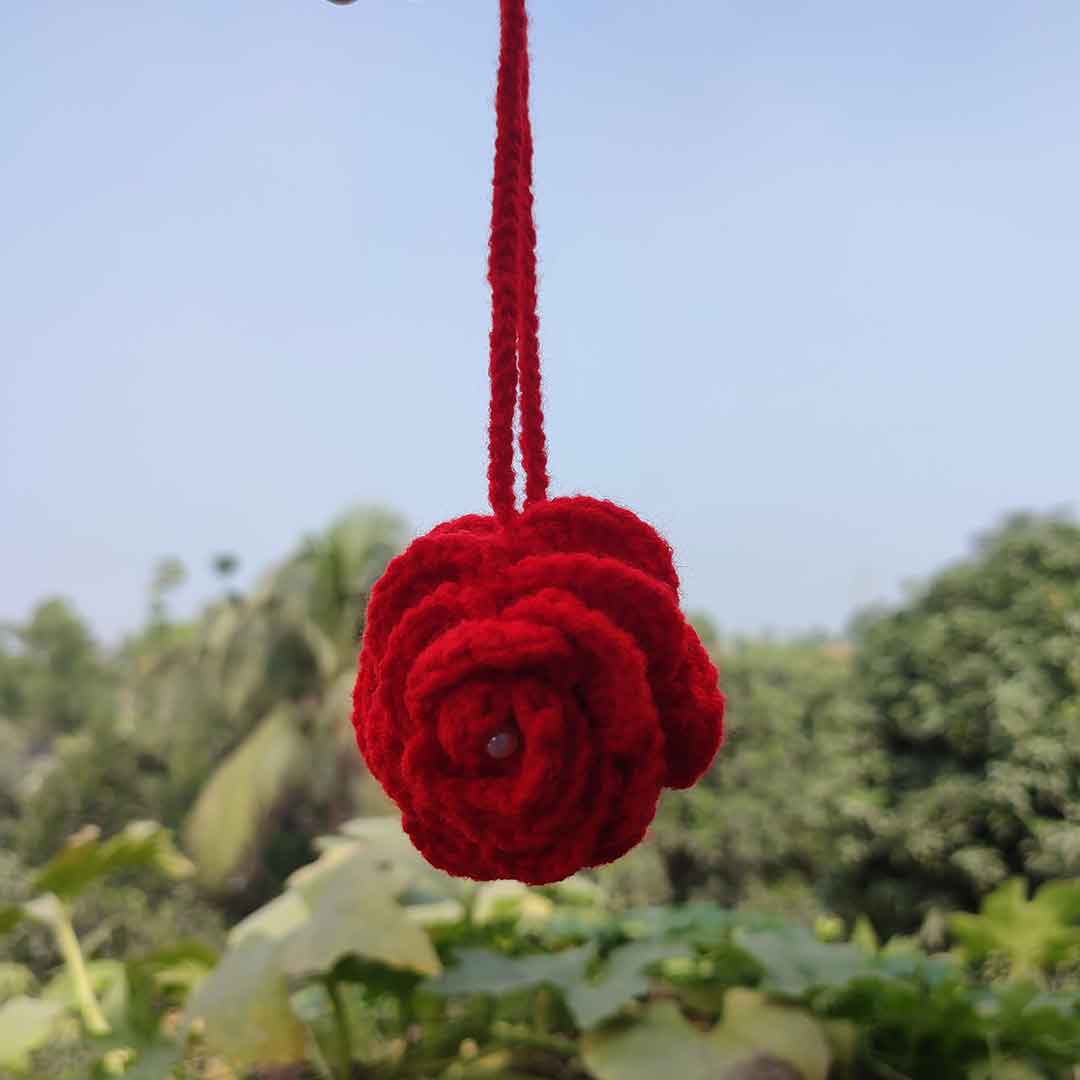 কোডঃ RK25; Handmade Crochet Red Rose Key Ring 🌹✨