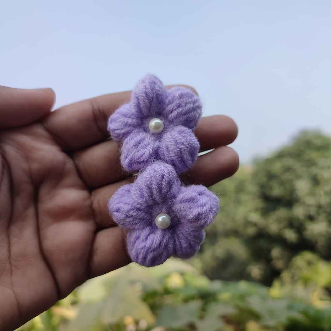 কোডঃ SS22; Handmade Crochet Pearl Flower Hair Band/Rubber (1 Pair) 🌸💜