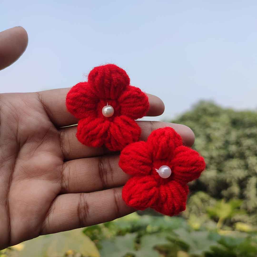 কোডঃ SS24; Handmade Crochet Pearl Flower Hair Band/Rubber (1 Pair) ❤️🌸